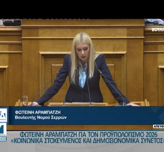 • Φωτεινή Αραμπατζή: «Ο Προϋπολογισμός του 2026 είναι ο πιο κοινωνικά στοχευμένος και ταυτόχρονα δημοσιονομικά συνετός των τελευταίων ετών.»