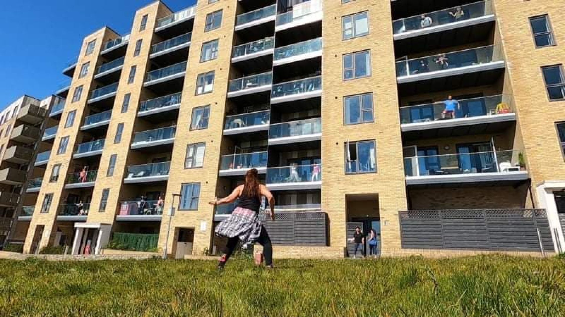 Zumba από τα μπαλκόνια των διαμερισμάτων τους έκαναν όσοι έχουν την τύχη να συγκατοικούν στο ίδιο συγκρότημα πολυκατοικιών με την Χριστίνα Αγγελή στην περιοχή Goshawk Court του Λονδίνου.