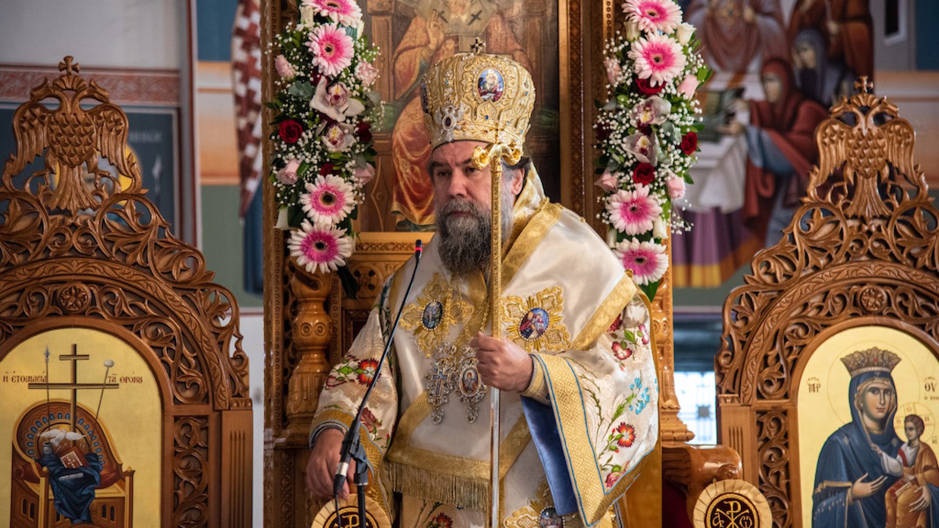 -Τήν Πέμπτη 15 Αὐγούστου, κύρια ἡμέρα μνήμης τῆς Κοιμήσεως τῆς Ὑπεραγίας Δεσποίνης ἡμῶν Θεοτόκου καί Ἀειπαρθένου Μαρίας, θά προεξάρχει στήν πανηγυρική Θεία Λειτουργία πού θά τελεσθεῖ στόν ἑορτάζοντα Ἱερό Ναό Κοιμήσεως Θεοτόκου τῆς πόλεώς μας.