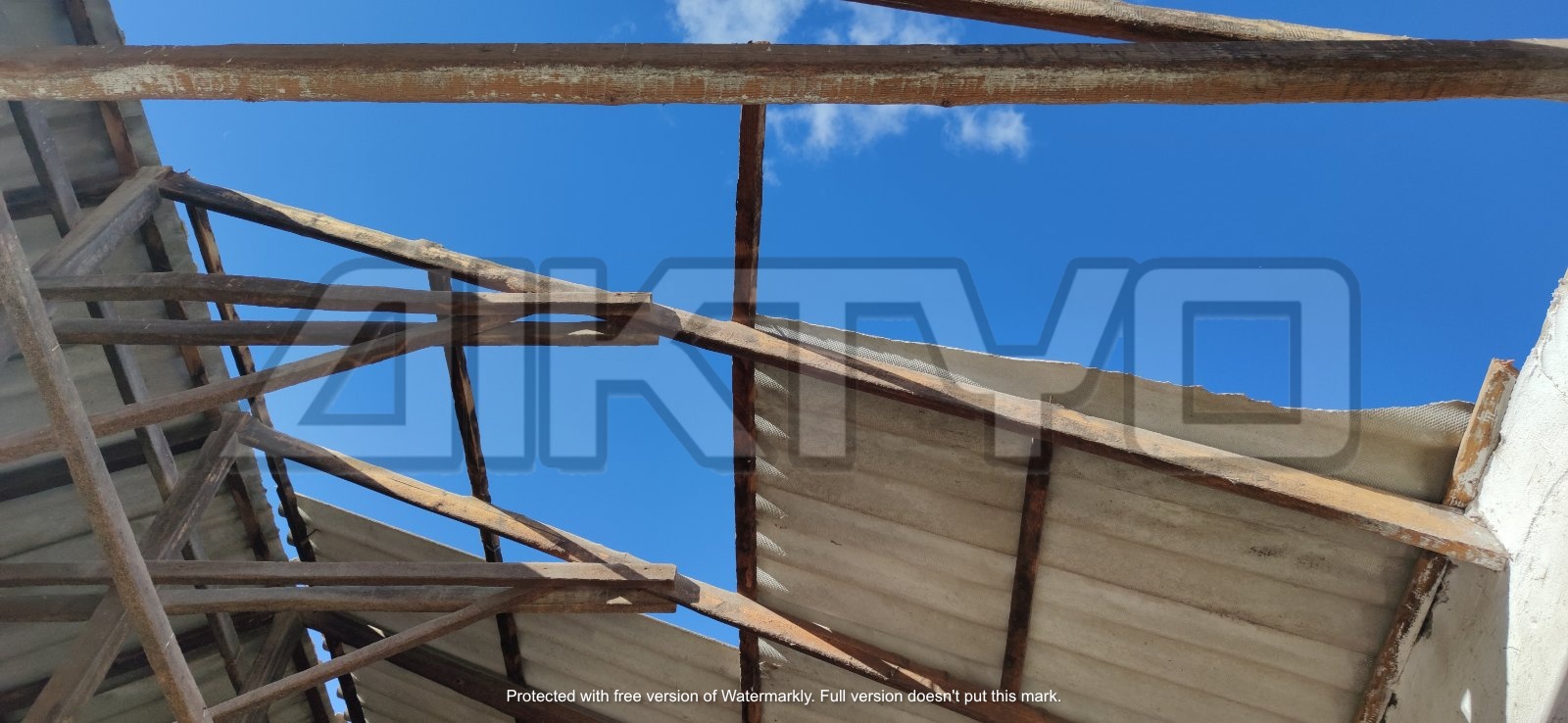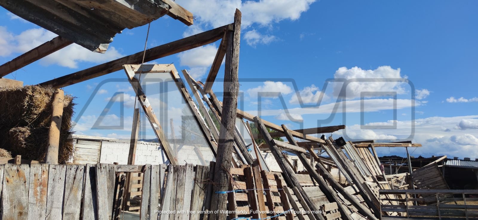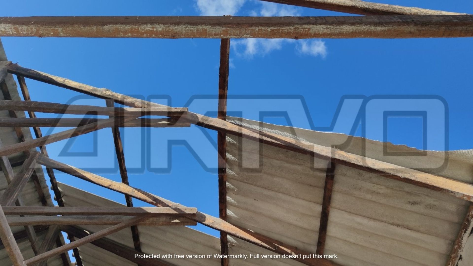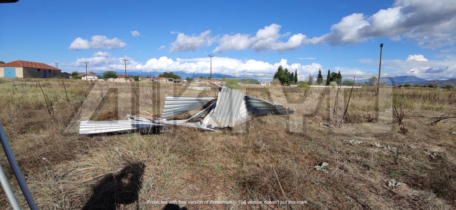 Ίδια η εικόνα και σε μια διπλανή αποθήκη, όπου η δύναμη του αέρα σήκωσε τα κεραμίδια, ενώ επίσης λίγα μέτρα πιο κάτω, λαμαρίνες ξηλώθηκαν και έφυγαν μέτρα μακριά με αποτέλεσμα το νερό της βροχής να καταστρέψει όλο το καλαμπόκι που ήταν αποθηκευμένο μέσα.