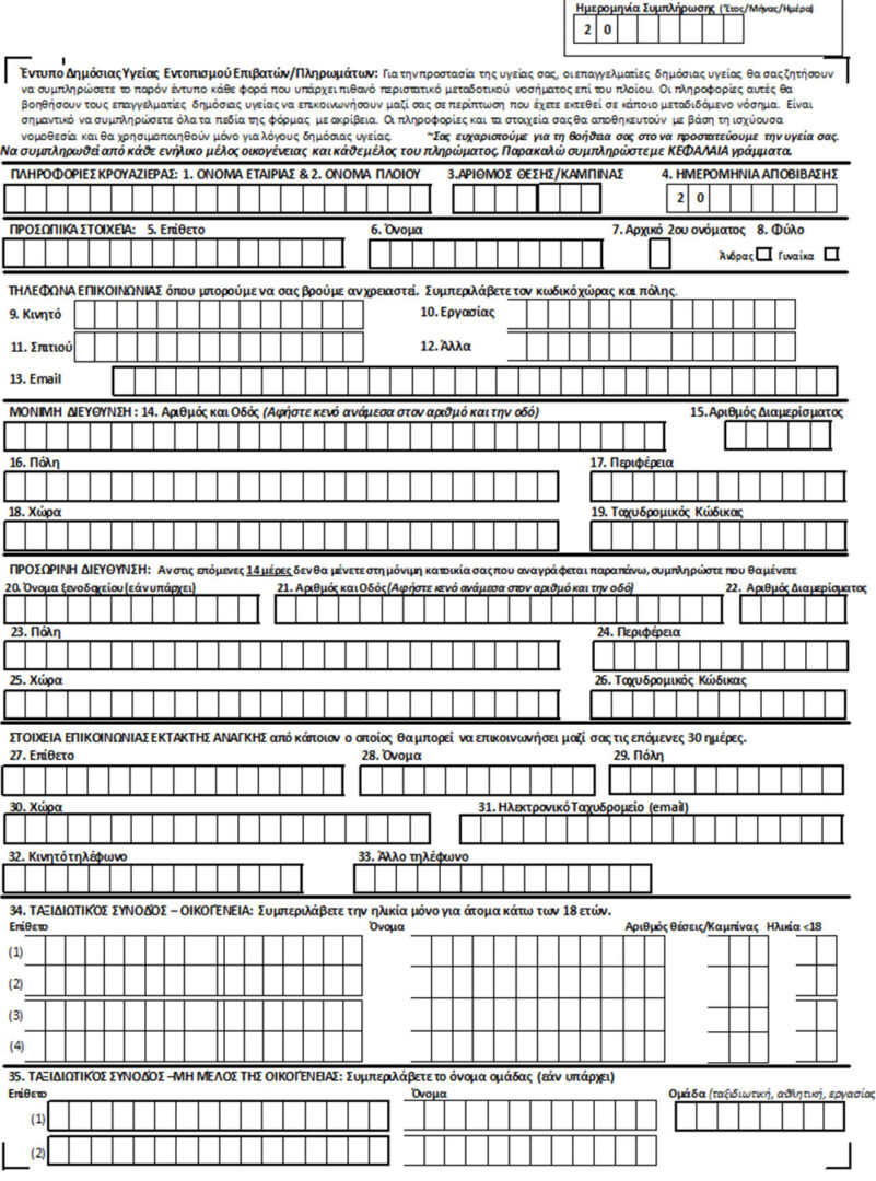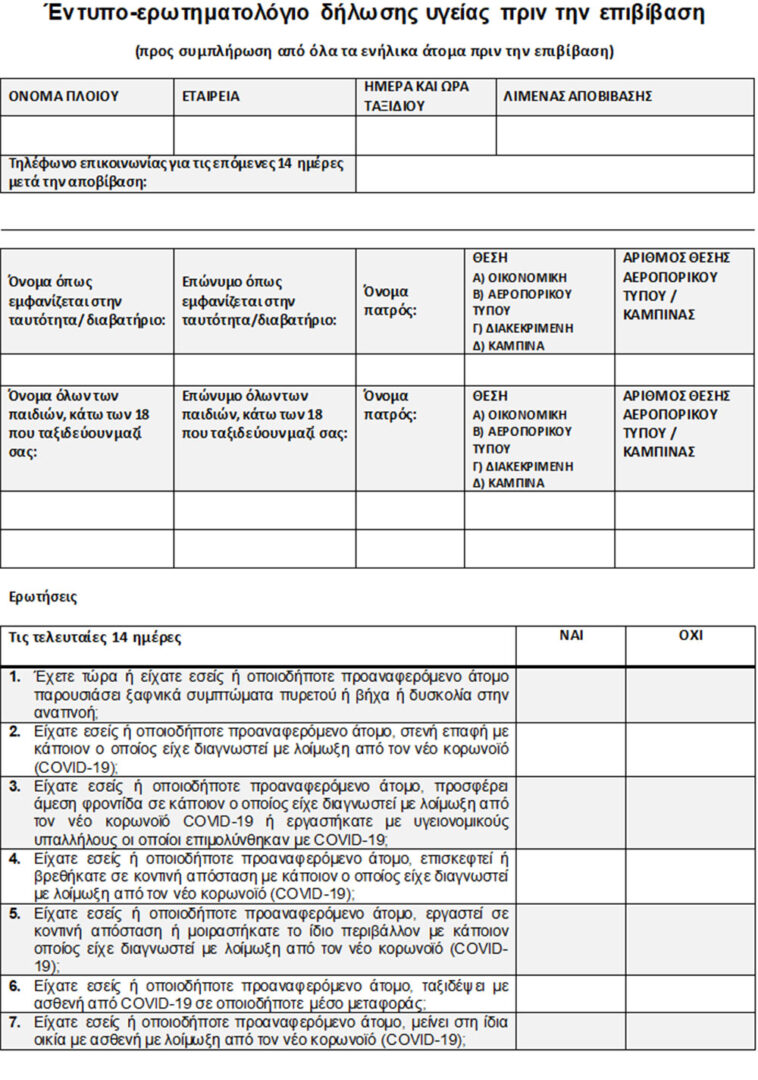 Τα ερωτηματολόγια θα παραδίδονται συμπληρωμένα από τους επιβάτες σε μέλη του πληρώματος του πλοίου, κατά την επιβίβαση.