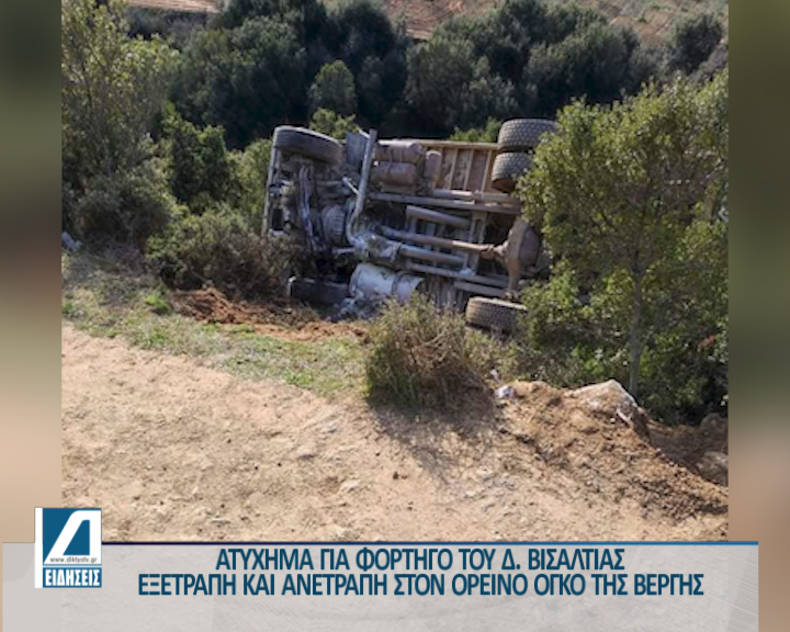 Εκτροπή φορτηγού του δήμου Βισαλτίας με αποτέλεσμα την ανατροπή του σε αγροτική έκταση σημειώθηκε προχθές το μεσημέρι. Ο οδηγός του ημιφορτηγού του δήμου Βισαλτίας έχασε τον έλεγχο του οχήματος ευτυχώς χωρίς να τραυματιστεί.