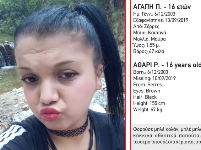 15 Σεπτεμβρίου, 2019 Press Room NEA Συναγερμό σήμανε το «Χαμόγελο του Παιδιού» για την εξαφάνιση της 16χρονης Αγάπης Π. στις Σέρρες.