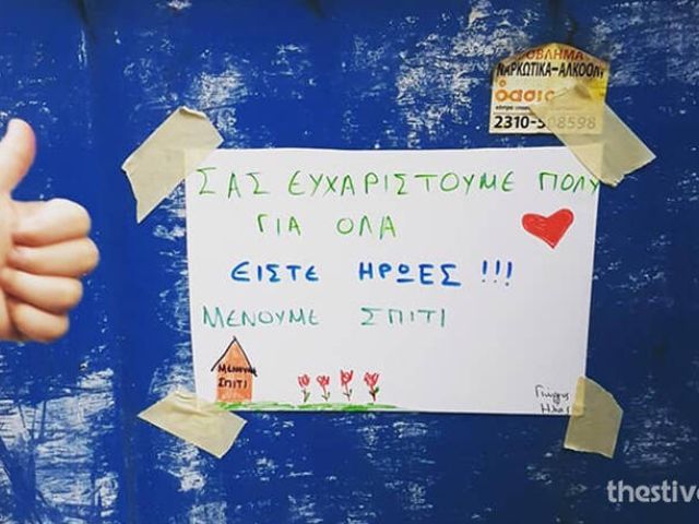 23 Απριλίου, 2020 Press Room ΔΗΜΟΦΙΛΗ Θεσσαλονίκη: Το συγκινητικό «ευχαριστώ» δύο παιδιών στους υπαλλήλους καθαριότητας – «Είστε ήρωες»