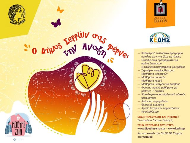 21 Απριλίου, 2020 Press Room ΣΕΡΡΑΙΚΑ ΝΕΑ «Ο Δήμος Σερρών σας φέρνει την Άνοιξη» – Πρόγραμμα Ε΄ Εβδομάδας