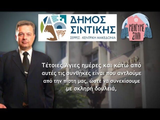 13 Απριλίου, 2020 Press Room ΣΕΡΡΑΙΚΑ ΝΕΑ Ο Δήμαρχος Σιντικής Φώτης Δομουχτσιδης στέλνει το δικό του μήνυμα για τις Άγιες Ημέρες του Πάσχα σεβόμενος τα περιοριστικά μέτρα.