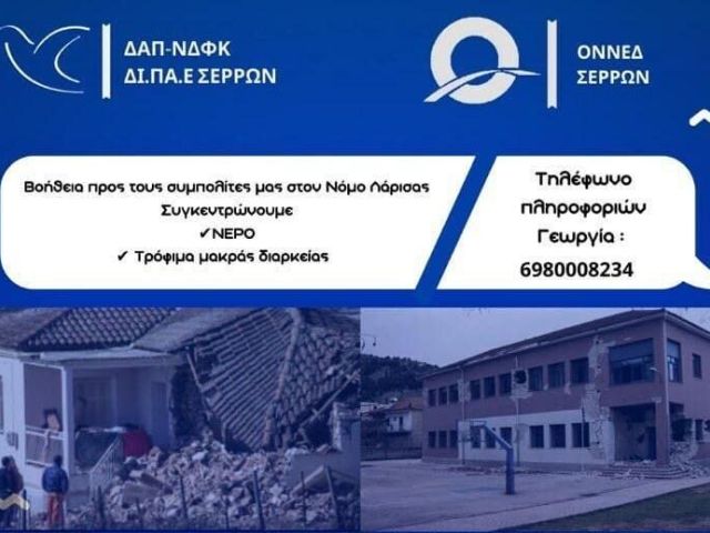 9 Μαρτίου, 2021 Press Room ΣΕΡΡΑΙΚΑ ΝΕΑ, ΣΕΡΡΕΣ Η ΟΝΝΕΔ Σερρών δίπλα στους σεισμόπληκτους της Λάρισας.