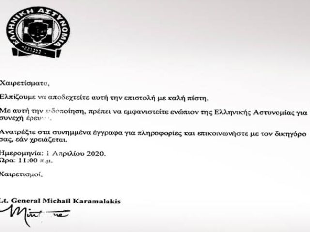 30 Μαρτίου, 2020 Press Room NEA ΠΡΟΣΟΧΗ!!!Το κείμενο – απάτη που φτάνει στο email ως δήθεν επιστολή της ΕΛΑΣ