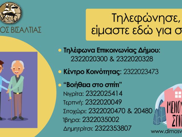 19 Μαρτίου, 2020 Press Room ΣΕΡΡΑΙΚΑ ΝΕΑ Δήμος Βισαλτίας: Έκτακτα μέτρα για την εξυπηρέτηση των πολιτών