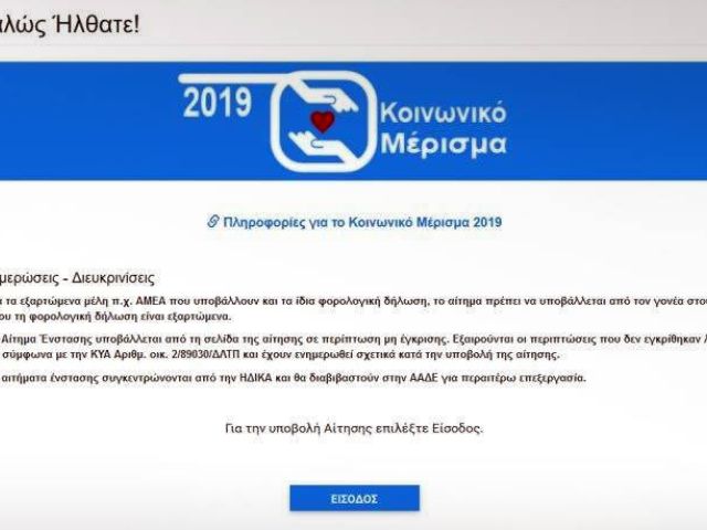 20 Δεκεμβρίου, 2019 Press Room ΟΙΚΟΝΟΜΙΑ Κοινωνικό Μέρισμα 2019: Άνοιξε η πλατφόρμα για τις ενστάσεις