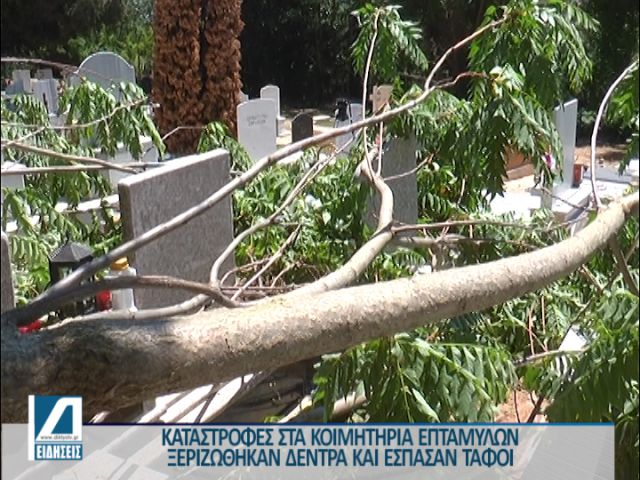 18 Μαΐου, 2022 Press Room NEA, ΚΟΙΝΩΝΙΑ, ΣΕΡΡΑΙΚΑ ΝΕΑ, ΣΕΡΡΕΣ Καταστροφές στα κοιμητήρια των Επταμύλων-Ξεριζώθηκαν δέντρα και έσπασαν τάφοι
