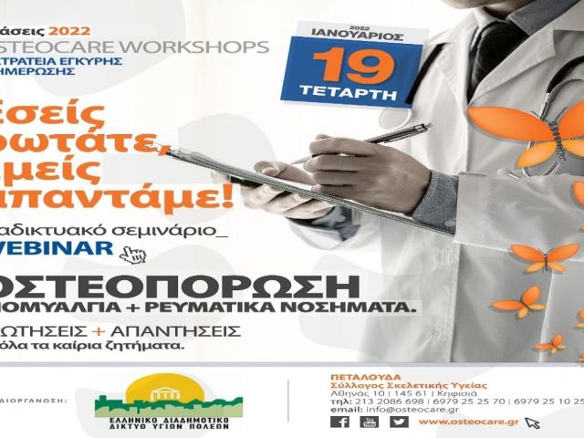 18 Ιανουαρίου, 2022 Press Room ΣΕΡΡΑΙΚΑ ΝΕΑ, ΥΓΕΙΑ Διαδικτυακό Σεμινάριο με θέμα «Ινομυαλγία και Ρευματικά Νοσήματα»