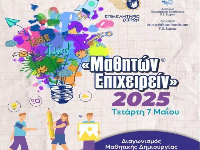 7 Μαΐου, 2025 Press Room ΣΕΡΡΑΙΚΑ ΝΕΑ Ενθουσιασμός, καινοτομία και δημιουργικότητα στο «Μαθητών Επιχειρείν» 2025