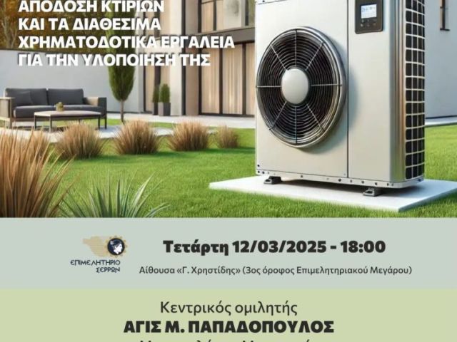 10 Μαρτίου, 2025 Press Room NEA O Σύλλογος Μηχανολόγων Ηλεκτρολόγων Ν Σερρών διοργανώνει ημερίδα με θέμα “ΑΝΤΛΙΕΣ ΘΕΡΜΟΤΗΤΑΣ – Η ΝΕΑ ΟΔΗΓΙΑ ΤΗΣ ΕΕ ΓΙΑ ΤΗΝ ΕΝΕΡΓΕΙΑΚΗ ΑΠΟΔΟΣΗ ΚΤΙΡΙΩΝ ΚΑΙ ΤΑ ΔΙΑΘΕΣΙΜΑ ΧΡΗΜΑΤΟΔΟΤΙΚΑ ΕΡΓΑΛΕΙΑ ΓΙΑ ΤΗΝ ΥΛΟΠΟΙΗΣΗ ΤΗΣ”