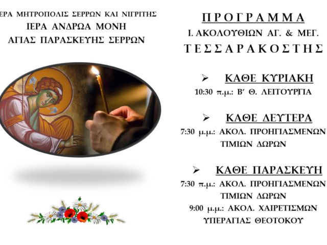 6 Μαρτίου, 2025 Press Room ΘΡΗΣΚΕΙΑ, ΣΕΡΡΑΙΚΑ ΝΕΑ Ἱερά Μητρόπολη Σερρῶν καί Νιγρίτης: Τό πρόγραμμα τοῦ Σεβασμιωτάτου Μητροπολίτου