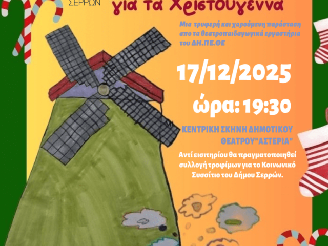 12 Δεκεμβρίου, 2025 Press Room NEA ΘΕΜΑ: ΧΡΙΣΤΟΥΓΕΝΝΙΑΤΙΚΗ ΕΚΔΗΛΩΣΗ ΑΠΟ ΤΑ ΘΕΑΤΡΟΠΑΙΔΑΓΩΓΙΚΑ ΕΡΓΑΣΤΗΡΙΑ ΤΟΥ ΔΗ.ΠΕ.ΘΕ. ΣΕΡΡΩΝ