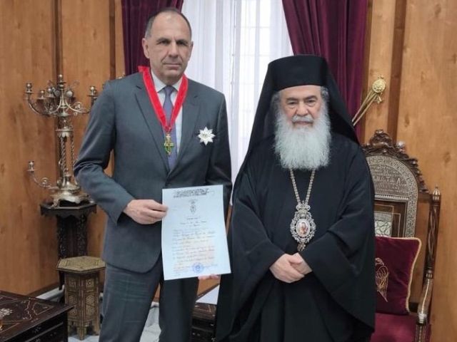 4 Φεβρουαρίου, 2025 Press Room NEA, ΘΡΗΣΚΕΙΑ Ο Πατριάρχης Ιεροσολύμων παρασημοφόρησε τον ΥΠΕΞ Γιώργο Γεραπετρίτη