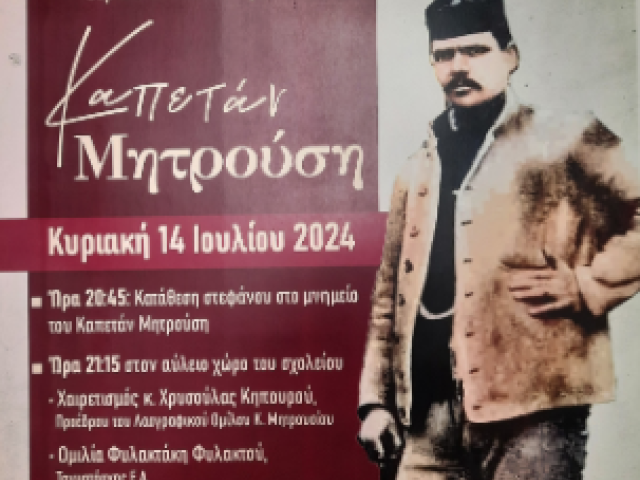 13 Ιουλίου, 2024 Press Room NEA, ΠΟΛΙΤΙΣΜΟΣ, ΣΕΡΡΑΙΚΑ ΝΕΑ, ΣΕΡΡΕΣ Εκδήλωση προς τιμήν του Ήρωα Μακεδονομάχου Καπετάν Μητρούση