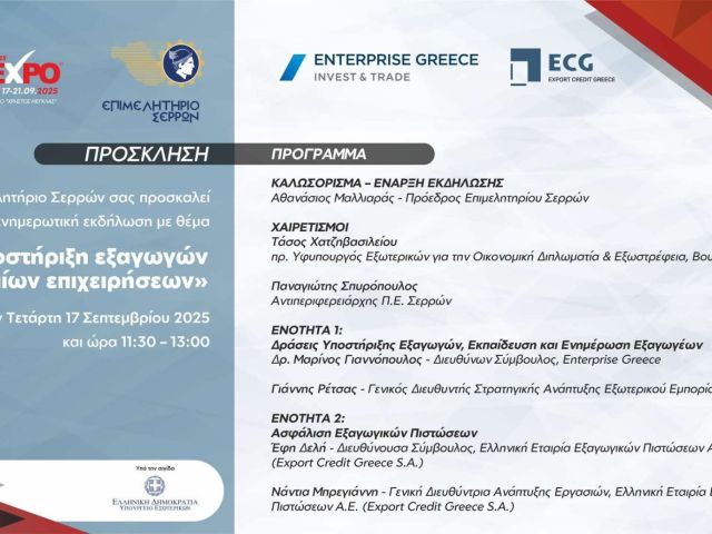15 Σεπτεμβρίου, 2025 Press Room NEA Εκδήλωση για την υποστήριξη των εξαγωγών των Μικρομεσαίων Επιχειρήσεων στο πλαίσιο της SEREXPO 2025.