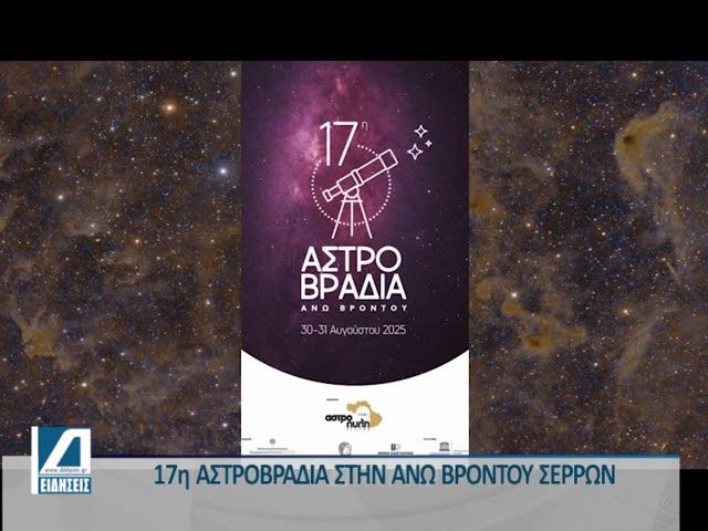 29 Αυγούστου, 2025 Press Room ΣΕΡΡΑΙΚΑ ΝΕΑ 17η Αστροβραδιά 2025: 30 & 31 Αυγούστου 2025 στην Άνω Βροντού Σερρών