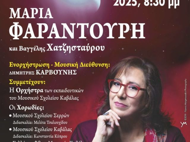 29 Ιουλίου, 2025 Press Room NEA Συναυλία με την Μαρία Φαραντούρη στο Κωπηλατοδρόμιο της Λίμνης Πεθελινού
