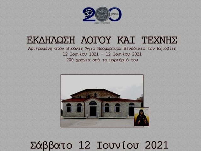 11 Ιουνίου, 2021 Press Room NEA, ΒΙΣΑΛΤΙΑ, ΚΟΙΝΩΝΙΑ, ΣΕΡΡΑΙΚΑ ΝΕΑ Δήμος Βισαλτίας: Εκδήλωση για τον Βισάλτη Άγιο Νεομάρτυρα Βενέδικτο των εξ Εζεβών