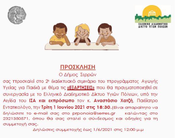 28 Μαΐου, 2021 Press Room NEA, ΣΕΡΡΑΙΚΑ ΝΕΑ, ΣΕΡΡΕΣ 2ο Διαδικτυακό Σεμινάριο του Προγράμματος Αγωγής Υγείας για Παιδιά
