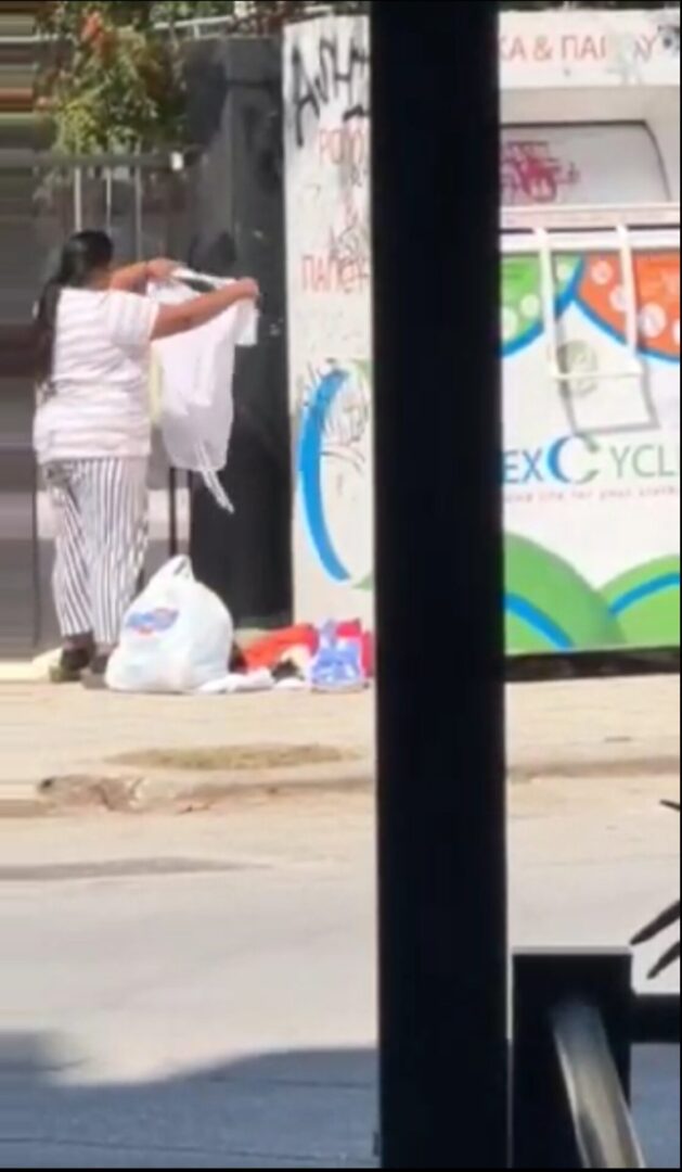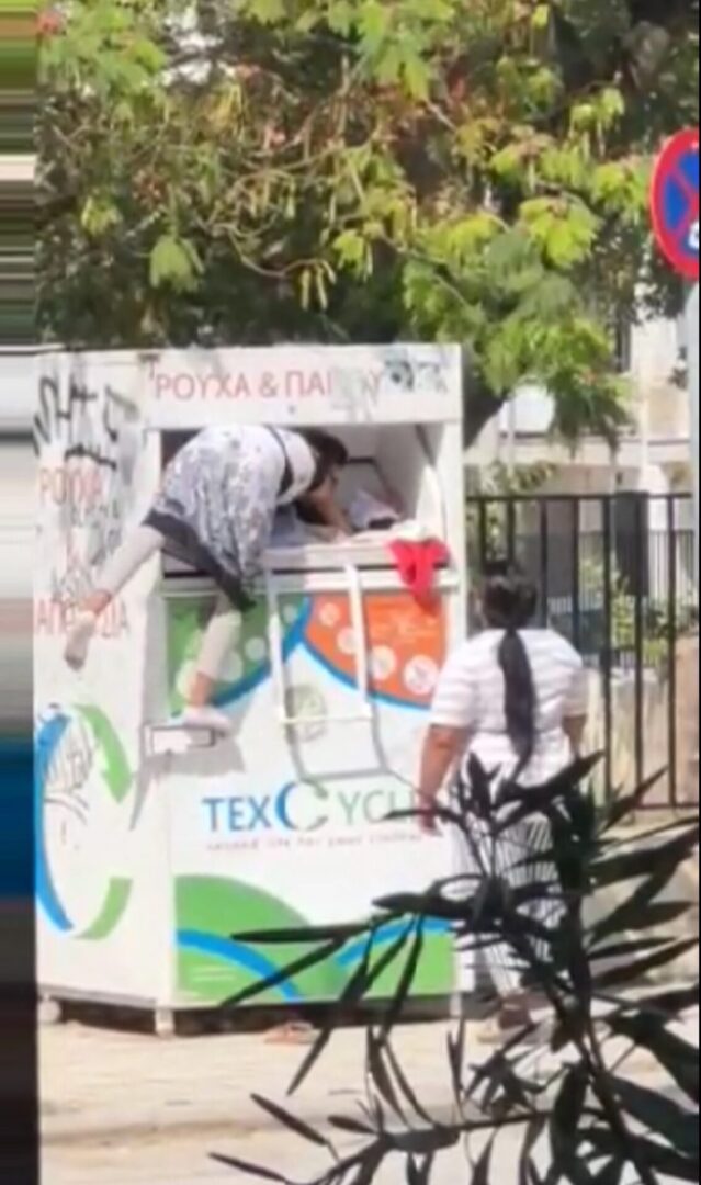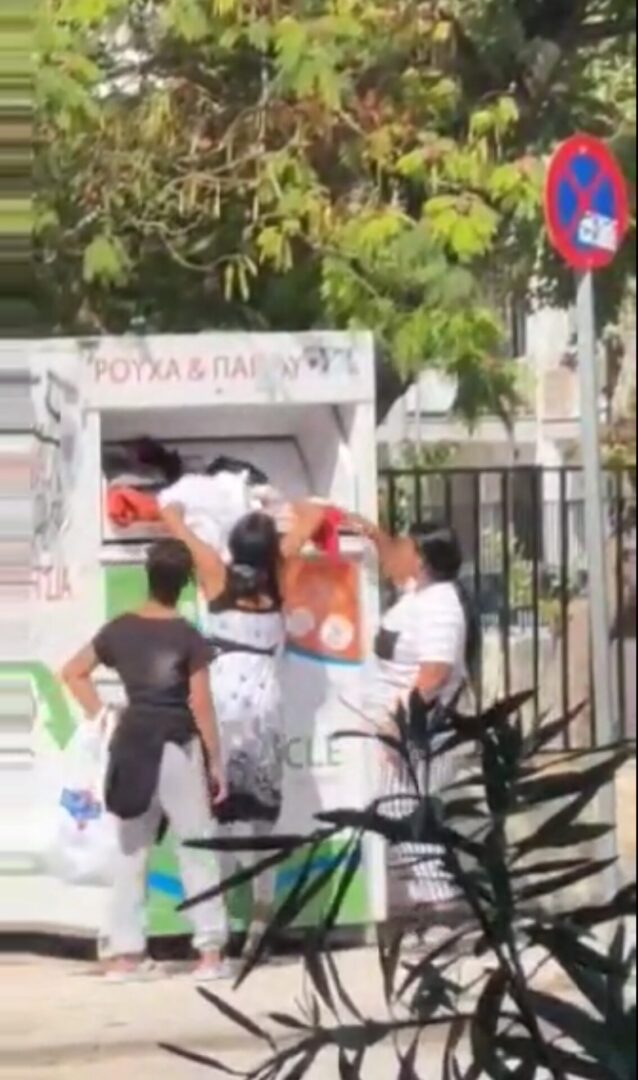 επίσης διασκορπισμένα πέριξ των κάδων ρούχα και σακούλες, δημιουργώντας μία άσχημη εικόνα που