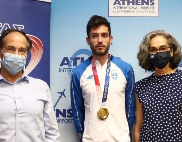 Πάνω σ΄ έναν Ολυμπιονίκη, «έπεσαν» οι λιγοστοί που βρέθηκαν λίγο μετά τα μεσάνυxτα στην αίθουσα αφίξεων του «Ελευθέριος…
