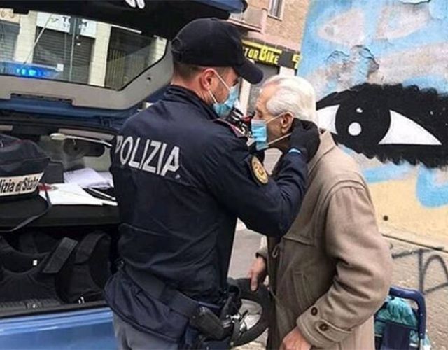 Κορονοϊός Ιταλία: Η συγκινητική φωτογραφία με αστυνομικούς που φορούν μάσκα σε ηλικιωμένο