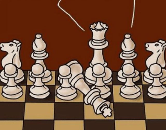 Στο σκίτσο πρωταγωνιστεί ο βασιλιάς σε μια παρτίδα σκάκι, ο οποίος δεν αντέχει την είδηση για το φόρο των δύο πύργων πο…
