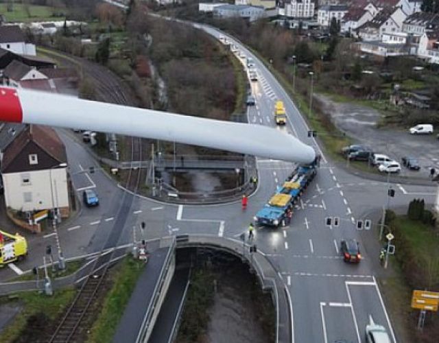 Πώς μεταφέρεται το πτερύγιο 67 μέτρων μιας ανεμογεννήτριας σε ένα αιολικό πάρκο;- Απίστευτες εικόνες από τη διέλευση μέσα από μικρά χωριά [εικόνες]