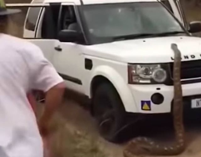 Τεράστιος πύθωνας κυνηγάει τουρίστες που τρέχουν στα αυτοκίνητά τους να σωθούν