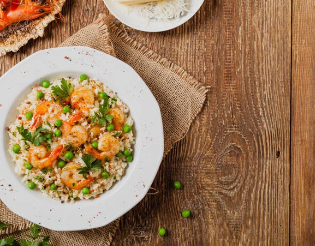 Υλικά για 4 άτομα 225 γρ. καλαμάρια καθαρισμένα 225 γρ. γαρίδες 185 γρ. ρύζι αρμπόριο 5 κ.σ. λάδι 600 ml ζωμό κότας…