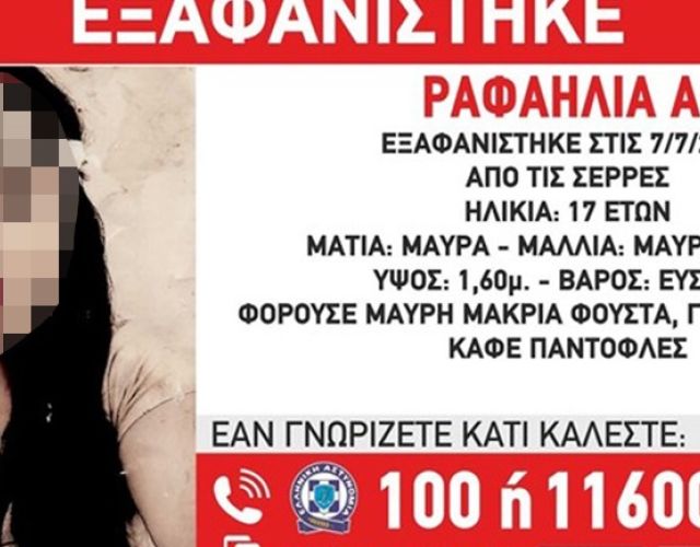Αισίως έληξε η περιπέτεια της 17χρονης Ραφαηλίας που είχε εξαφανιστεί και αναζητούταν εδώ και μέρες στις Σέρρες. Η Ραφα…
