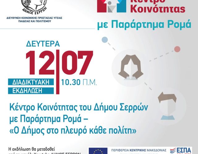 Διαδικτυακή εκδήλωση για την παρουσίαση του Κέντρου Κοινότητας με Παράρτημα Ρομά
