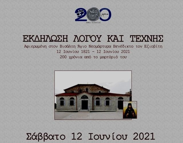 Εκδήλωση λόγου και τέχνης αφιερωμένη στον Βισάλτη Άγιο Νεομάρτυρα Βενέδικτο των εξ Εζεβών, διοργανώνει ο Δήμος Βισαλτία…