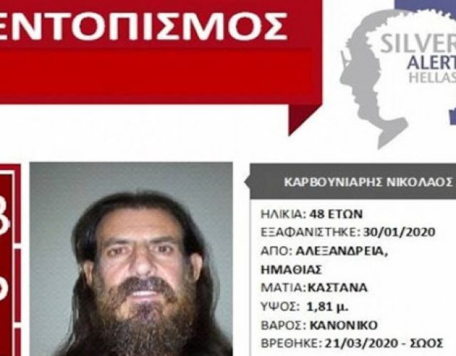 Αίσιο τέλος είχε η εξαφάνιση ενός 48χρονου, από την Αλεξάνδρεια Ημαθίας, ο οποίος αγνοούνταν από τον Ιανουάριο του 2019…