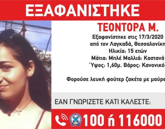 Εξαφανίστηκε 15χρονη από τη Θεσσαλονίκη