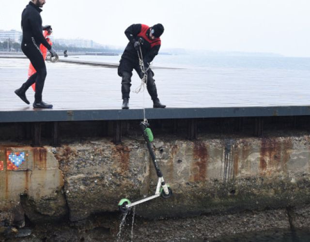 «Στόλος» ηλεκτρικών πατινιών στον βυθό του Θερμαϊκού -Ανασύρθηκαν… 80!
