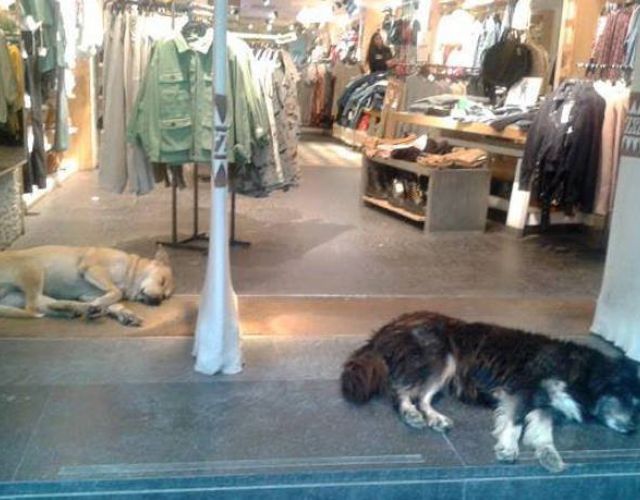 Τη θαλπωρή, μέσα σε πολυτελή καταστήματα του κέντρου της Θεσσαλονίκης, βρίσκουν συχνά αδέσποτα, μεγαλόσωμα σκυλιά, δημι…