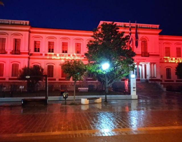 To εμβληματικό κτίριο της πόλης των Σερρών, το Διοικητήριο, φωτίστηκε κόκκινο το βράδυ της Δευτέρας 8 Μαϊου στο πλαίσι…