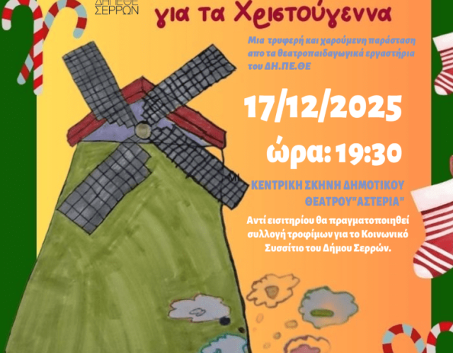 Τετάρτη 17/12/2025 | ΏΡΑ: 19.30 ΚΕΝΤΡΙΚΗ ΣΚΗΝΗ ΔΗΜΟΤΙΚΟΥ ΘΕΑΤΡΟΥ «ΑΣΤΕΡΙΑ» Το ΔΗ.ΠΕ.ΘΕ Σερρών παρουσιάζει μια γ…
