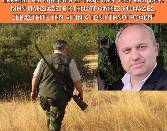 ΕΚΚΛΗΣΗ ΤΟΥ ΔΗΜΑΡΧΟΥ ΣΙΝΤΙΚΗΣ ΠΡΟΣ ΤΟΥΣ ΚΥΝΗΓΟΥΣ: “ΜΗΝ ΠΛΗΣΙΑΖΕΤΕ ΤΙΣ ΚΤΗΝΟΤΡΟΦΙΚΕΣ ΜΟΝΑΔΕΣ”