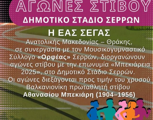 «Μπεκιάρεια 2025» – Αγώνες Στίβου στο Δημοτικό Στάδιο Σερρών