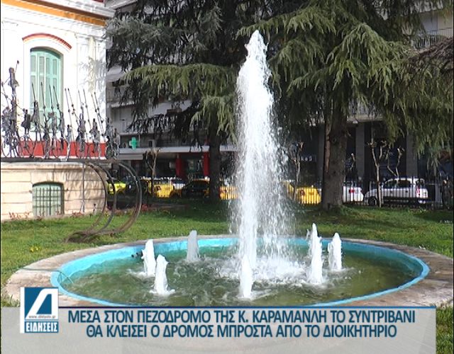 Μέσα στον πεζόδρομο της Κων. Καραμανλή το σιντριβάνι-Κλείνει ο δρόμος μπροστά από το Διοικητήριο