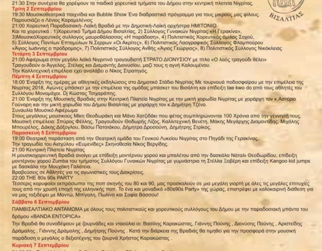 Δήμος Βισαλτίας: Πρόγραμμα για τα “Γερακίνεια 2025”