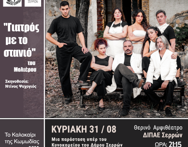 ΚΑΛΟΚΑΙΡΙ ΤΗΣ ΚΩΜΩΔΙΑΣ 2025 «ΓΙΑΤΡΟΣ ΜΕ ΤΟ ΣΤΑΝΙΟ» του Μολιέρου ΚΥΡΙΑΚΗ 31/08 | ΩΡΑ: 21:15 Ανοιχτό Αμφ…