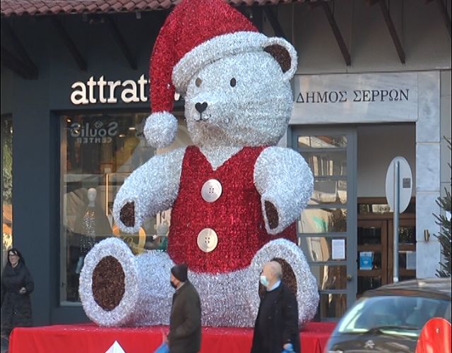 Ένας χριστουγεννιάτικος αρκούδος μπροστά στο δημαρχείο Σερρών