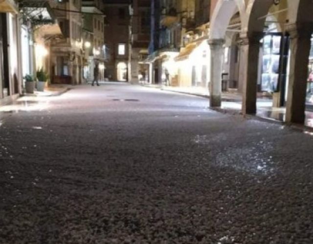 Εντονη χαλαζόπτωση στην Κέρκυρα -Πλημμύρισαν επαρχιακοί δρόμοι [βίντεο]